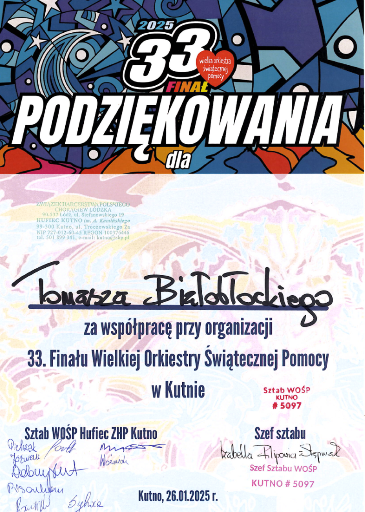 Treningi dla dzieci i dla kobiet specjalnie przygotowane z myślą o wsparciu 33. Finału WOŚP w Kutnie odbyły się 25 stycznia 2025 r. na sali sportowej Akademii Nauk Stosowanych Gospodarki Krajowej w Kutnie. Treningi poprowadził dr inż. Tomasz Białobłocki, który od wielu lat prowadzi zajęcia w ramach Klubu Sportów i Sztuk Walki AZS ANSGK Kutno. W dedykowanych specjalnie dla nich zajęciach wzięły udział kobiety i dzieci, które zechciały w ten sposób wesprzeć WOŚP.