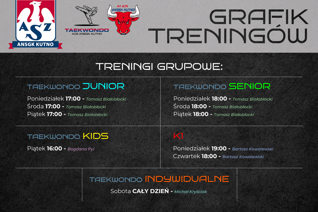 📅 Sobota – cały dzień — trener Michał Kryściak 🧡